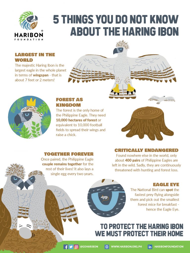 The forest is the only home of the Philippine Eagle. They need 10,000 hectares of forest or equivalent to 10,000 football fields to spread their wings and raise a chick.